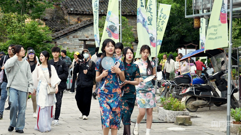 放眼古鎮(zhèn),隨處可見游客著一身旗袍或者漢服在古鎮(zhèn)之中游玩拍照,在古建筑群中穿梭游走。沿路攤位琳瑯滿目的陶瓷文創(chuàng)產品、瑤河中古色古香的花船表演、非遺傳承人現(xiàn)場表演……層出不窮的古鎮(zhèn)文化引得游客們紛紛駐足觀看,在古鎮(zhèn)體驗一半煙火一半詩意。