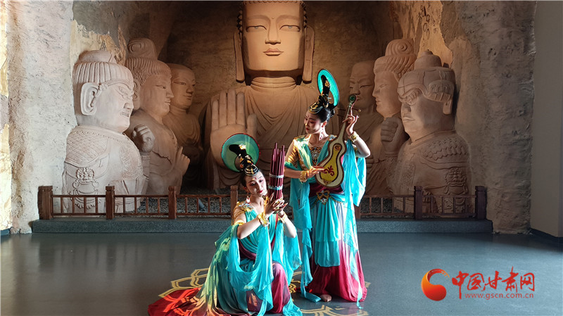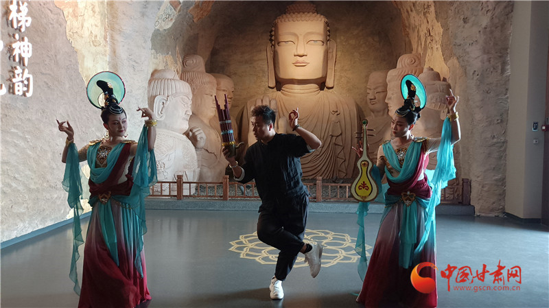 “我覺得你的舞蹈動作可以再柔和一點,再飄逸一點,要給人從壁畫中飛出來的那種感覺。”在武威市博物館天梯山仿真石窟展區(qū),付泓正在給排練西涼樂舞的舞蹈演員講要領(lǐng),他希望西涼樂舞可以像壁畫里飛出來的那樣,再現(xiàn)千年涼州的繁華。