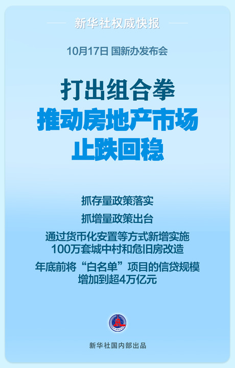 17日,國(guó)新辦發(fā)布會(huì)引起市場(chǎng)高度關(guān)注。住房城鄉(xiāng)建設(shè)部、財(cái)政部、自然資源部、中國(guó)人民銀行、國(guó)家金融監(jiān)督管理總局五部門(mén)有關(guān)負(fù)責(zé)人齊亮相,推出增量舉措,落實(shí)存量政策,打出一套組合拳,推動(dòng)房地產(chǎn)市場(chǎng)止跌回穩(wěn)。