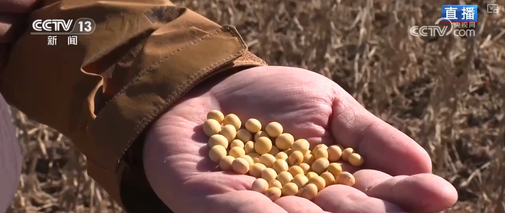 這片地里正在收獲的就是蛋白豆,從春天播種時,農(nóng)業(yè)專家和科研團隊就深入到大豆主產(chǎn)區(qū),為農(nóng)戶們帶來了多年通過實驗篩選的優(yōu)質(zhì)品種。這些種子是從幾十個品種中選取出來的抗病蟲害、蛋白質(zhì)含量更高的優(yōu)良豆種。同時,通過實地種植測產(chǎn)試驗,專家們指導農(nóng)戶把每畝地里種植的大豆,從多年以來的8000株增加到1萬株。通過合理的種植布局和科學的田間管理,2024年的畝產(chǎn)可以達到450斤以上,比增密種植前畝產(chǎn)增收了五六十斤。