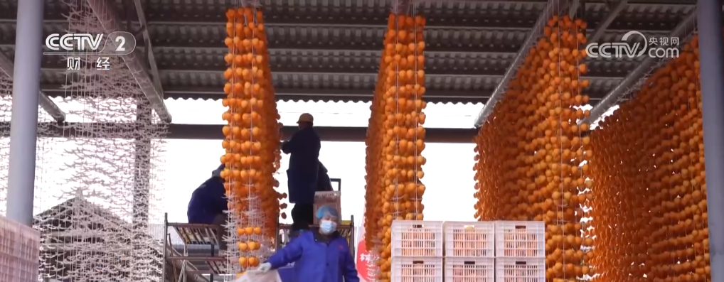 除了傳統(tǒng)的柿餅加工外,富平當(dāng)?shù)剡€拓展出冰柿、柿子飲品、柿葉茶等10余種產(chǎn)品。近年來,富平縣柿子栽種面積已達(dá)36萬畝,年產(chǎn)鮮柿28萬噸,加工柿餅7萬噸,柿子全產(chǎn)業(yè)鏈產(chǎn)值達(dá)到65億元,有效帶動了柿農(nóng)增收。