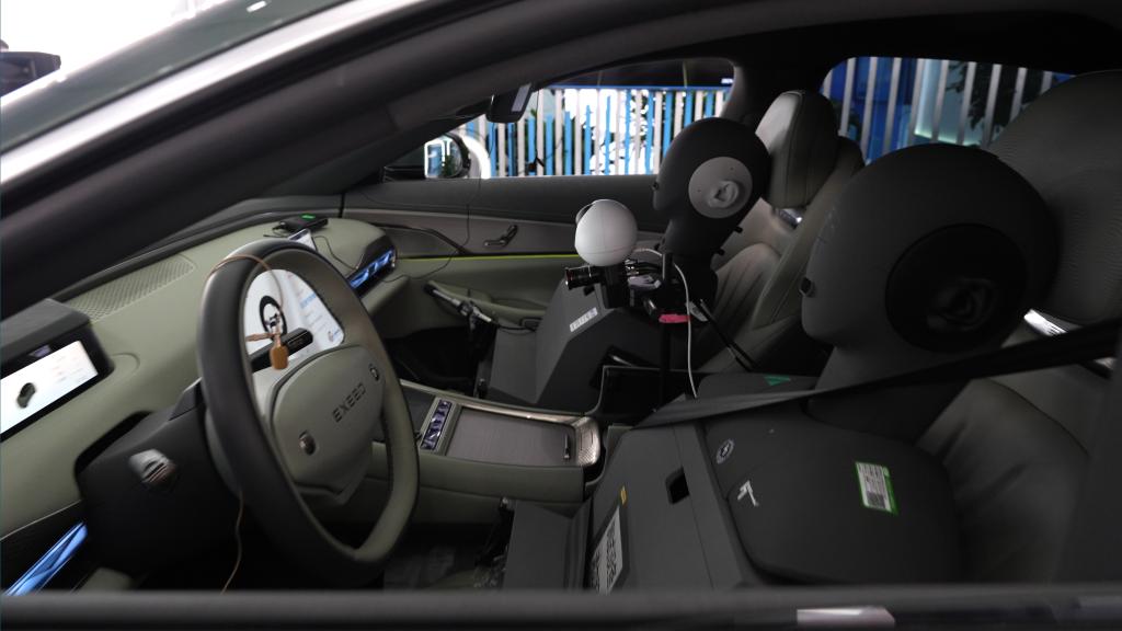 在展區(qū)中的一輛新能源汽車(chē)內(nèi)部,一臺(tái)機(jī)器人正在模擬乘客與汽車(chē)進(jìn)行語(yǔ)音交互,汽車(chē)外的一塊大屏幕上,實(shí)時(shí)分析顯示語(yǔ)音交互效果的準(zhǔn)確性、穩(wěn)定性和及時(shí)性,并最終自動(dòng)生成報(bào)告。這款智能座艙人機(jī)交互效果評(píng)測(cè)機(jī)器人首次亮相,便吸睛無(wú)數(shù)。