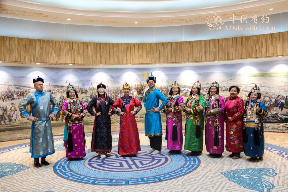 聽完講解后,西海非物質(zhì)文化遺產(chǎn)交流中心民間藝人們身穿華麗的民族服飾,伴隨著歡快的薩吾爾登舞,為采訪團成員上演了一場精彩絕倫的視覺盛宴。中國日報美籍專家Elliot McGowen表示,開始還覺得奇怪,然而在這里了解了蒙古族在新疆的歷史后,大為震撼。在這幾天新疆的采訪中,他看到除了維吾爾族以外的其他民族,Elliot 表示:“其他地方很少有這樣豐富的多樣性,看到這里各族人民如此團結(jié)、攜手同行,令我非常感動?!埃ň庉嫞簞⑹罇|)