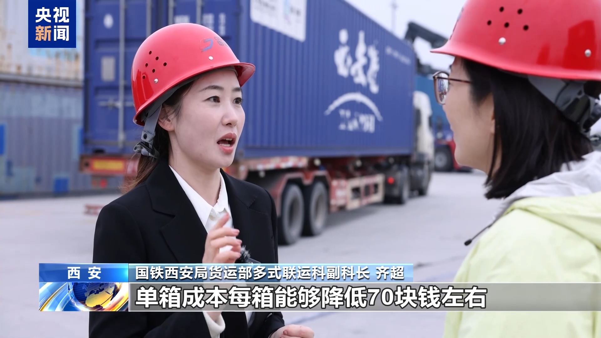 國鐵西安局貨運(yùn)部多式聯(lián)運(yùn)科副科長 齊超:這個降本非常明顯,比如原來可能拉一次200塊錢,一天可能最多跑兩趟,賺400塊錢。如果現(xiàn)在能一天跑五趟,就能賺1000塊錢,那單趟成本就愿意降低。我們大概測算了一下,經(jīng)過改善之后,單箱成本每箱能夠降低70塊錢左右。