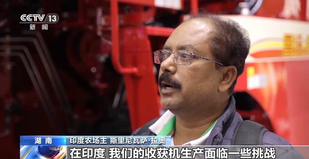 印度農(nóng)場(chǎng)主 斯里尼瓦薩·拉奧:在印度,我們的收獲機(jī)生產(chǎn)面臨一些挑戰(zhàn),因此我滿懷期待來(lái)到長(zhǎng)沙,來(lái)到農(nóng)機(jī)展上找我們急需的裝備。中國(guó)的收獲機(jī)品質(zhì)卓越,我認(rèn)為,你們中國(guó)人真是“能工巧匠”。
