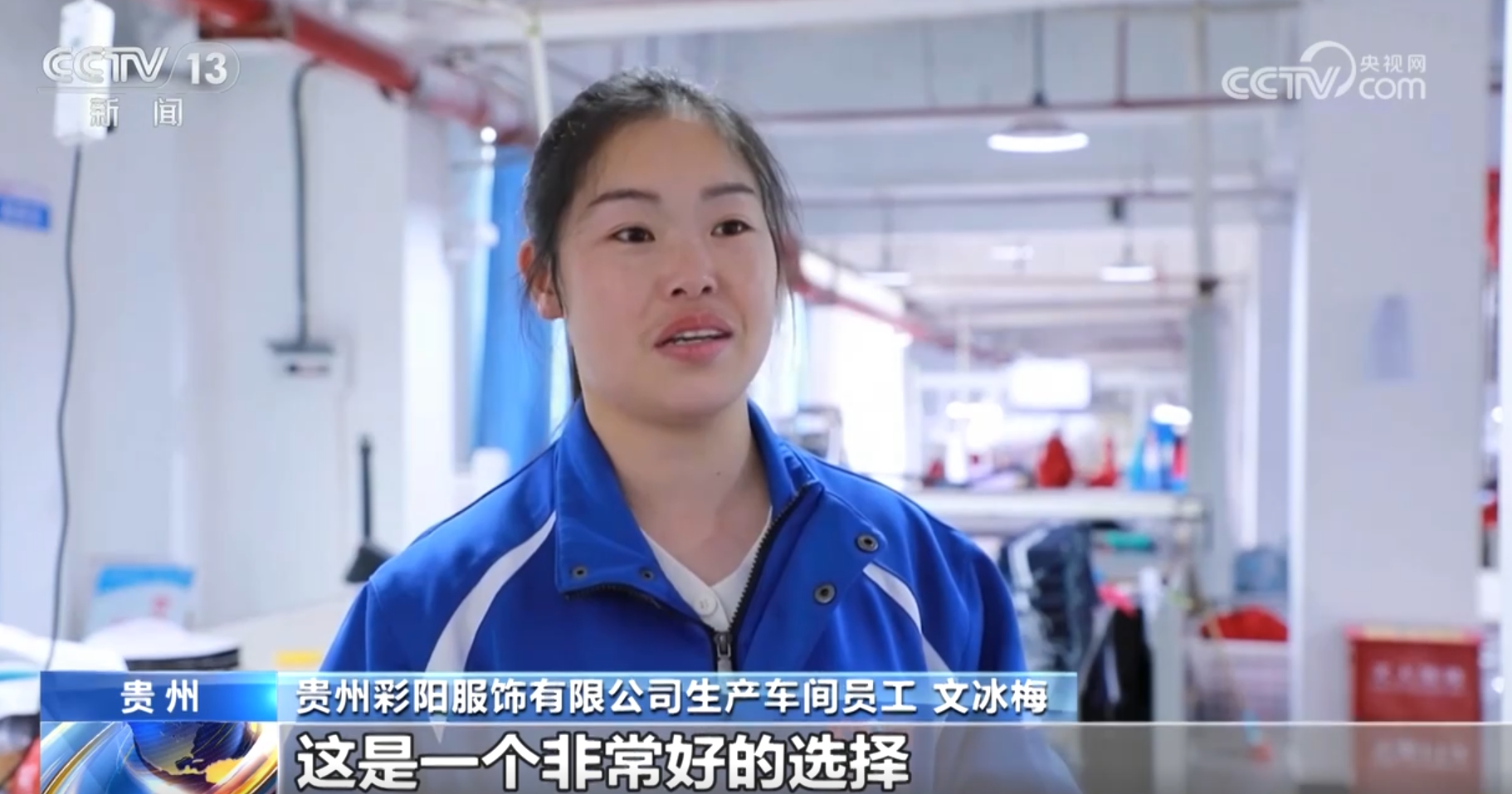 貴州彩陽服飾有限公司生產(chǎn)車間員工文冰梅稱:“平均工資四五千元,十幾年都在外面打工,回到家還有一份穩(wěn)定的收入,對于我們長期在外面打工的人來說,這是一個(gè)非常好的選擇?!?/p>