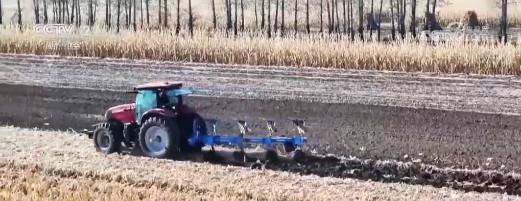 從空中看去,未收獲的地方是呈現(xiàn)金色,收割后的地面,大型的翻地機(jī)跟在后面將秸稈直接翻入地下,翻地車一過(guò)就露出油汪汪的黑土地了。這些翻完的地之后還要耙平、起壟,這樣第二年開(kāi)春可以直接種植了。記者在當(dāng)?shù)夭稍L期間,看到了這些農(nóng)戶幾乎是24小時(shí)晝夜不停在進(jìn)行收割和秋整地,可以說(shuō)是“人歇機(jī)器不歇”,在搶抓農(nóng)時(shí),當(dāng)?shù)赜芯湓捊小敖鹕x田、黑色越冬”。