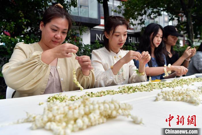 鄒曉娜在現(xiàn)場進行茉莉花手環(huán)制作。她表示,茉莉花是福州的市花,和兩岸朋友一起制作茉莉花手環(huán),很有意義,而且能讓大家對福州有更深入的認識。