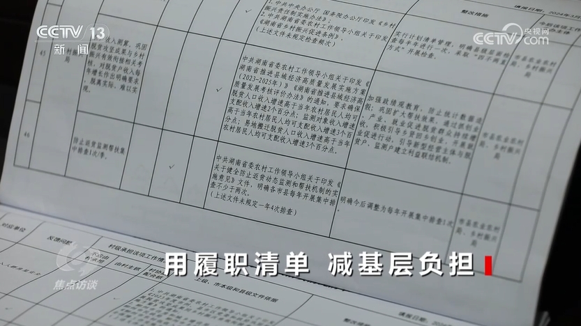 央視網(wǎng)消息(焦點訪談):“上面千條線,底下一根針”,人們經(jīng)常用這句話來描述鄉(xiāng)鎮(zhèn)干部的基層工作狀況。也有人用“小馬拉大車”形象地描述基層干部在實際工作中所面臨的滿負(fù)荷狀態(tài)。為了減輕基層負(fù)擔(dān),2024年8月,中共中央辦公廳、國務(wù)院辦公廳印發(fā)《整治形式主義為基層減負(fù)若干規(guī)定》,其中明確提出,要規(guī)范明晰基層權(quán)責(zé),建立健全職責(zé)清單。那么,目前基層權(quán)責(zé)明晰做得如何呢?