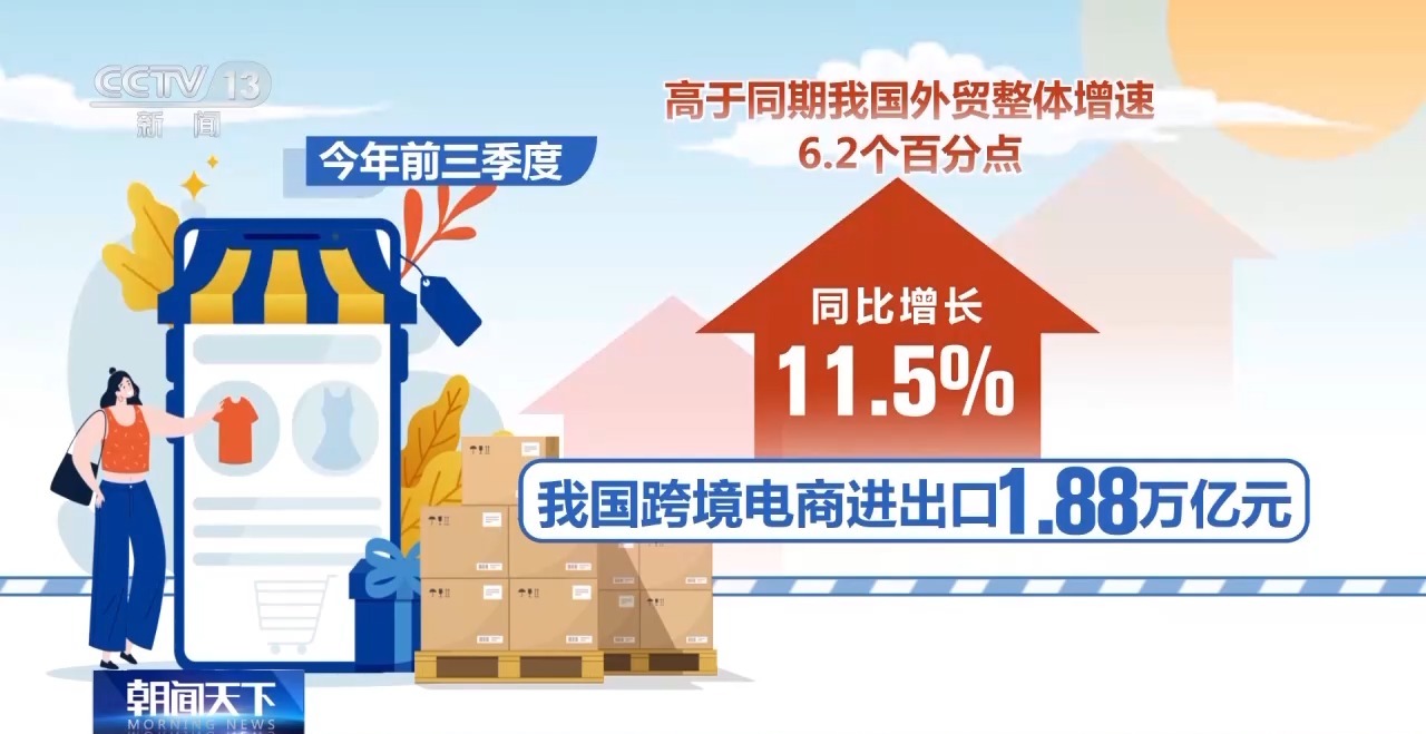 據(jù)海關(guān)總署最新發(fā)布的數(shù)據(jù)顯示,今年前三季度,我國跨境電商進出口1.88萬億元,同比增長11.5%,高于同期我國外貿(mào)整體增速6.2個百分點,正成為我國外貿(mào)增長新動能。