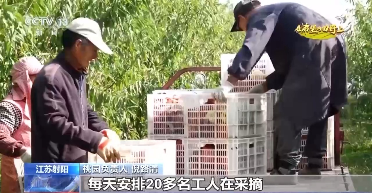 在鹽城市射陽縣新坍鎮(zhèn)的一處桃園種植了4萬多株桃樹。果農(nóng)們忙著摘桃、分揀、裝筐,預(yù)計整個采摘銷售期能持續(xù)一個月左右。