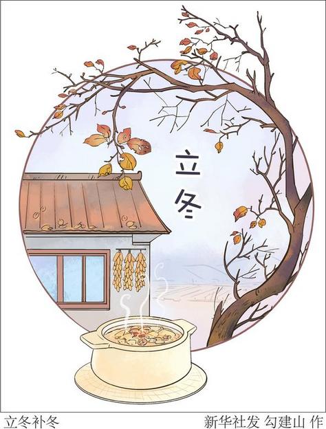 立冬時節(jié),各地有豐富多彩的傳統(tǒng)習俗。比如,民間有祭祖、飲宴、卜歲等習俗,以時令佳品向祖靈祭祀,祈求來年是豐年;還有“補冬”,北方有“立冬補冬,補嘴空”的諺語,人們習慣在立冬這天吃餃子,因為餃子外形似耳朵,人們認為吃了它,冬天耳朵就不受凍。此外,還有釀黃酒、吃生蔥等。