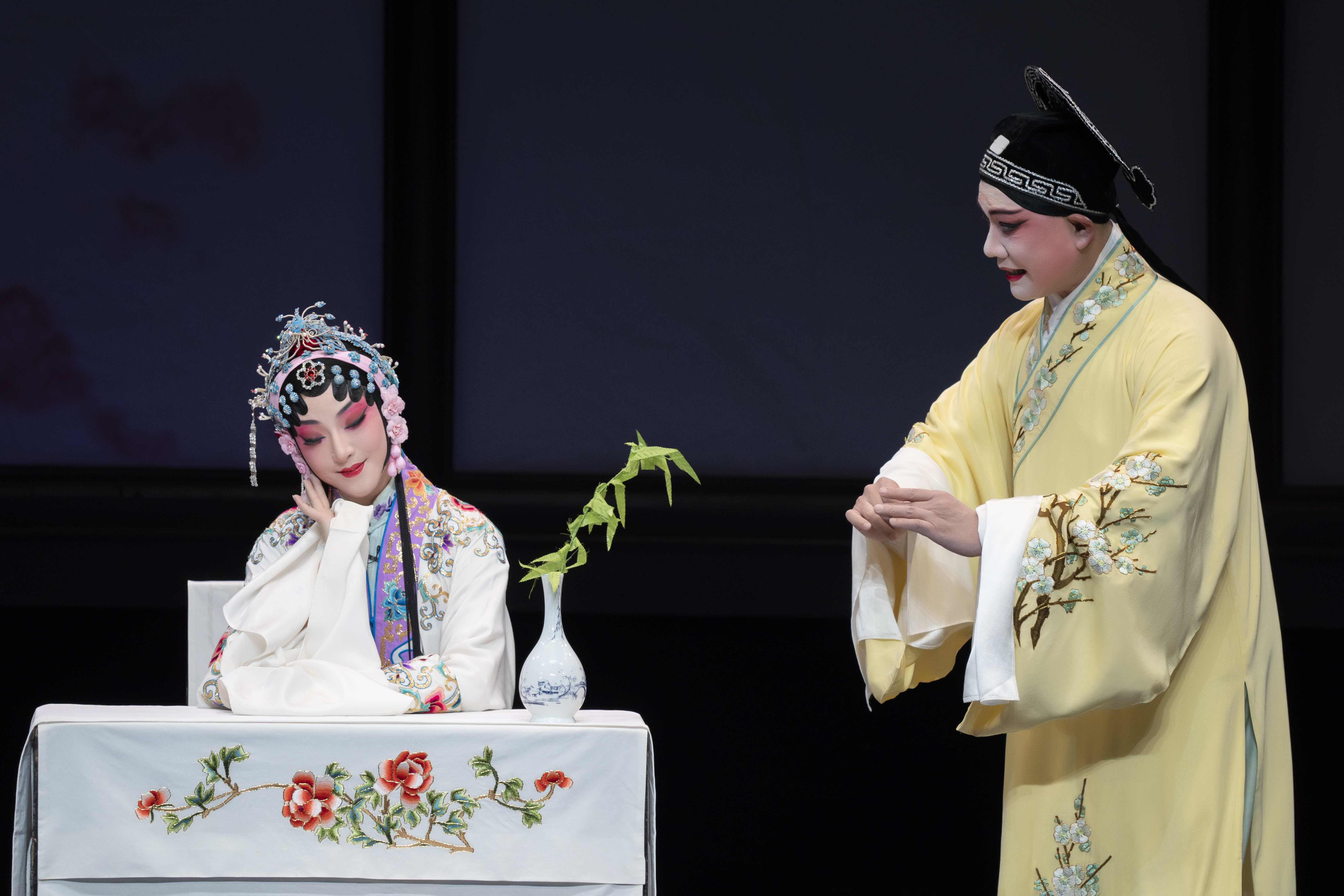 一桌一椅的極簡舞臺,為什么卻能在觀眾心中撐出一個內涵極為豐富的文化空間?《牡丹亭》以其文辭典雅、語言秀麗著稱,被譽為“花中之后”,不僅是中國古典戲曲中的瑰寶,更是中國戲劇文學發(fā)展史上的重要里程碑。“我15年前第一次聽昆曲時,覺得節(jié)奏很慢,難以適應。如今再次觀看《牡丹亭》,盡管生活節(jié)奏加快了許多,我卻能更加從容地融入其中,深刻體驗到中華傳統(tǒng)文化之美。”觀眾于女士感嘆,不止于戲文,《牡丹亭》的聲腔、表演、舞臺,每一個元素都承載著深厚的文化價值,讓人在中國式審美中共鳴于人物的精神追求。
