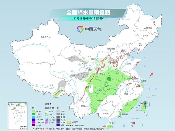 具體來看,中央氣象臺預計,今天,內蒙古河套地區(qū)、西藏東北部、青海北部和東南部、川西高原北部、甘肅河西和南部、寧夏大部、陜西中北部、山西中南部等地部分地區(qū)有小到中雪或雨夾雪。陜西南部、河南大部、安徽西部、湖北中西部、湖南北部、四川盆地、重慶、貴州大部、云南東部、福建東部和南部、廣東東部、海南島、臺灣島等地部分地區(qū)有小到中雨,其中,臺灣島東北部等地部分地區(qū)有大到暴雨。
