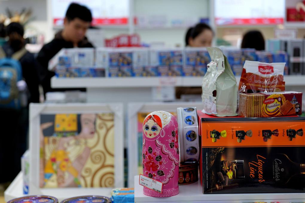 11月17日,旅客在湖北漢口車站中歐班列進(jìn)口商品保稅店選購(gòu)商品。新華社記者 邢廣利 攝