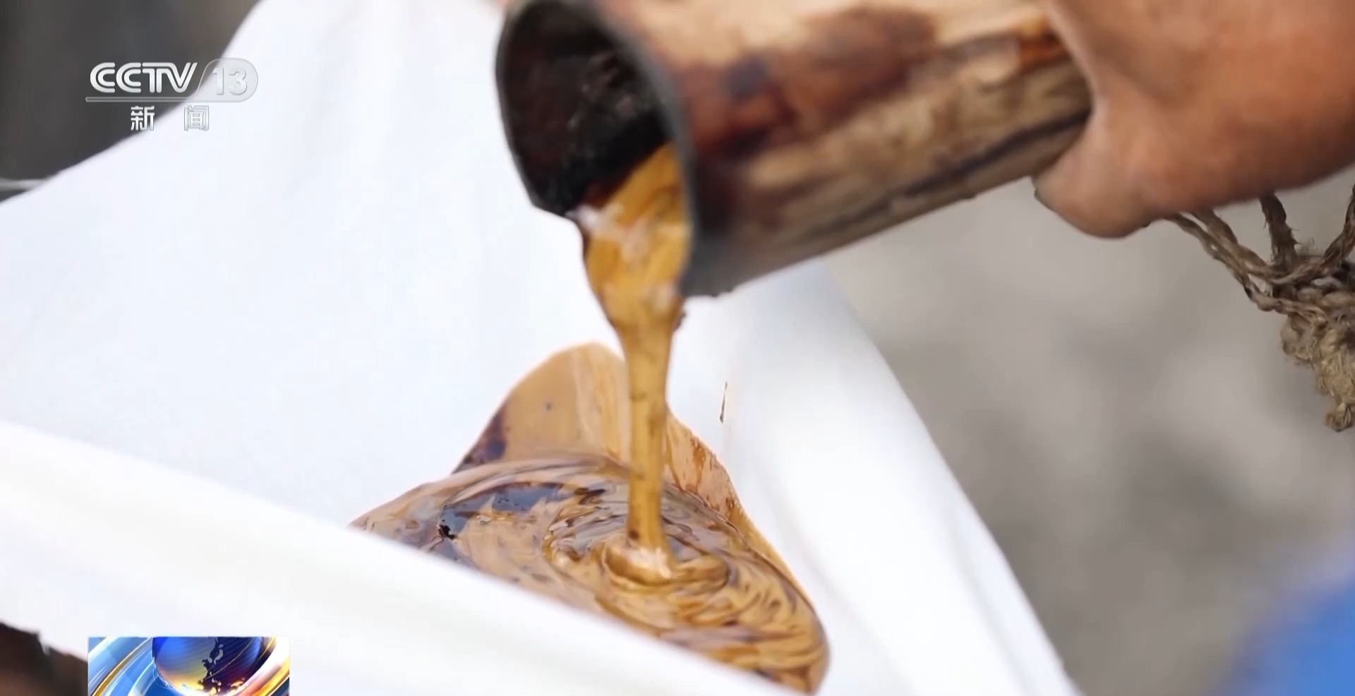 收割來的生漆,經(jīng)過濾渣、熬制、冷卻與桐油混合之后才能使用。