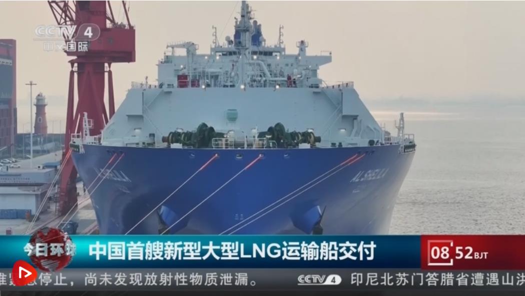 中國(guó)自主研制的首艘新型大型LNG液化天然氣運(yùn)輸船11月25日在上海交付國(guó)外用戶。這型船采用了國(guó)際先進(jìn)的新型貨艙系統(tǒng),一次運(yùn)輸量可滿足一個(gè)城市一個(gè)月的供給需求,填補(bǔ)了中國(guó)在該船型建造領(lǐng)域的空白。