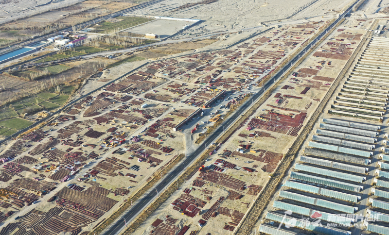 315國道策勒縣段兩側(cè)的千畝紅棗晾曬場(11月29日無人機(jī)攝)。