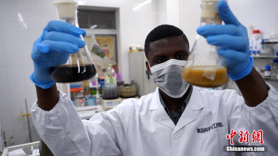 威廉(William)來(lái)自非洲加納首都阿克拉,本科畢業(yè)于加納的發(fā)展研究大學(xué)營(yíng)養(yǎng)學(xué)專(zhuān)業(yè),在做了兩年?duì)I養(yǎng)健康醫(yī)師后,他對(duì)兒童營(yíng)養(yǎng)不良問(wèn)題感到擔(dān)憂(yōu),于是萌生了提升學(xué)歷并對(duì)營(yíng)養(yǎng)學(xué)做進(jìn)一步研究的想法。圖為廣東廣州,威廉在華南理工大學(xué)實(shí)驗(yàn)室里做實(shí)驗(yàn)。
