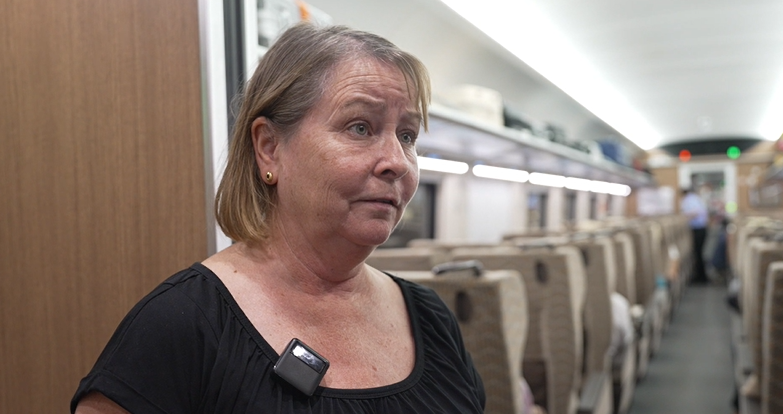 黃復(fù)勝:“我感覺坐了這個火車,覺得很舒服,然后很快就可以進火車,check in(進站)和 check out(出站)都是很方便的。”