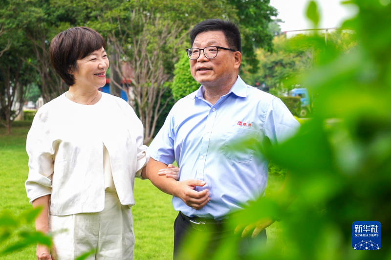 陳富澤和愛(ài)人在廠區(qū)綠地聊天。新華網(wǎng) 肖和勇 攝