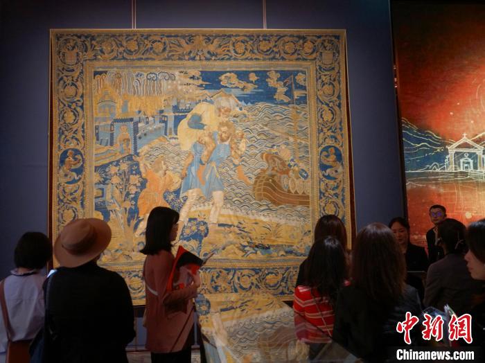 11月15日,澳門(mén)保利美高梅博物館正式開(kāi)幕。圖為觀眾參觀初代澳門(mén)總督馬士加路也所訂制的掛毯。中新社記者 鄭嘉偉 攝