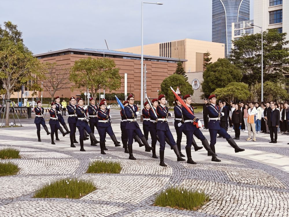 如今,澳門所有學(xué)校已實(shí)現(xiàn)升掛國(guó)旗全覆蓋。澳門大學(xué)于2018年正式成立學(xué)生國(guó)旗儀仗隊(duì)。這支由本科生、碩士生、博士生自發(fā)組成的隊(duì)伍6年多來(lái)持續(xù)成長(zhǎng)壯大,已成為澳門高校界的一張靚麗名片。