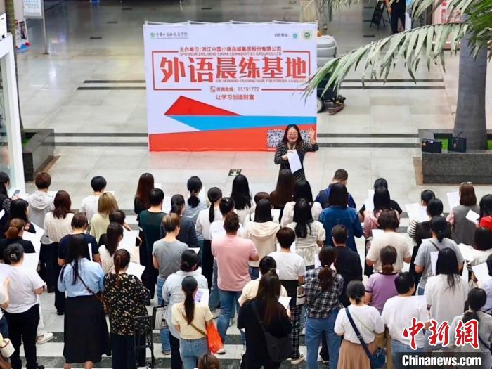 每天早上8:40-9:20,趕在大量顧客到來之前,在義烏國際商貿(mào)城的各個區(qū)塊都可以看到上百位集體晨讀、學習英語的人。其中大部分是市場內(nèi)的老板娘,很多都經(jīng)營著上千萬年外貿(mào)訂單的商鋪。