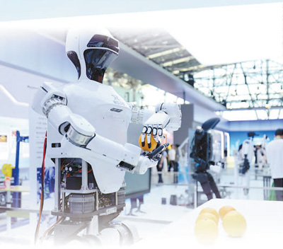 2024世界制造業(yè)大會(huì)上,人形機(jī)器人“啟江二號(hào)”正在抓取橙子。 張 敏攝