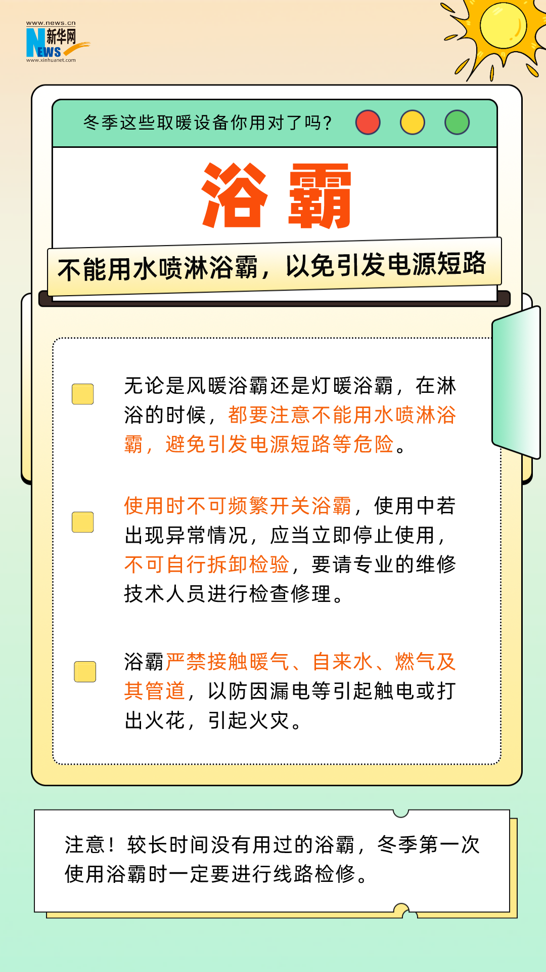 冬季到來,隨著氣溫降低,火爐、電暖器、電熱毯、暖手寶、浴霸等取暖設(shè)備開始被大家廣泛使用。在享受溫暖的同時,一定要注意,如果使用不當(dāng)會引發(fā)安全隱患甚至危及生命!冬季取暖設(shè)備如何放心選安心用?這份實用指南送給你。