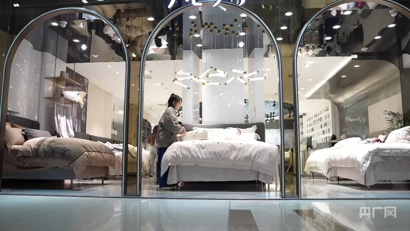 疊石橋家紡城內(nèi)店員整理家紡產(chǎn)品(央廣網(wǎng)記者 楊夢(mèng)奎 攝)