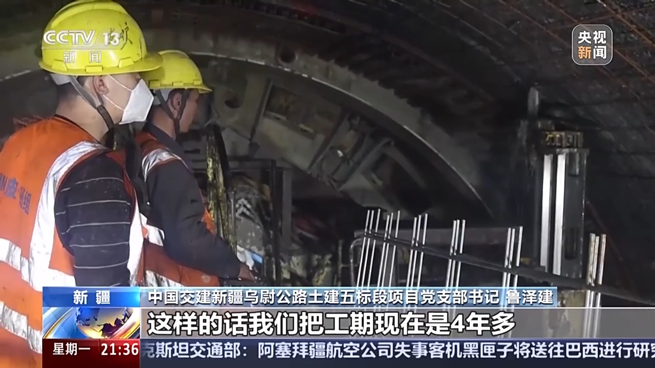 中國交建新疆烏尉公路包項(xiàng)目總經(jīng)理部總經(jīng)理 周政:對。因?yàn)槲覀冏罡叻逶诶镞呌?4個工作面同時(shí)施工,人員也高達(dá)3000人左右,所以對人員的安全保障我們也是采取了很多新辦法。