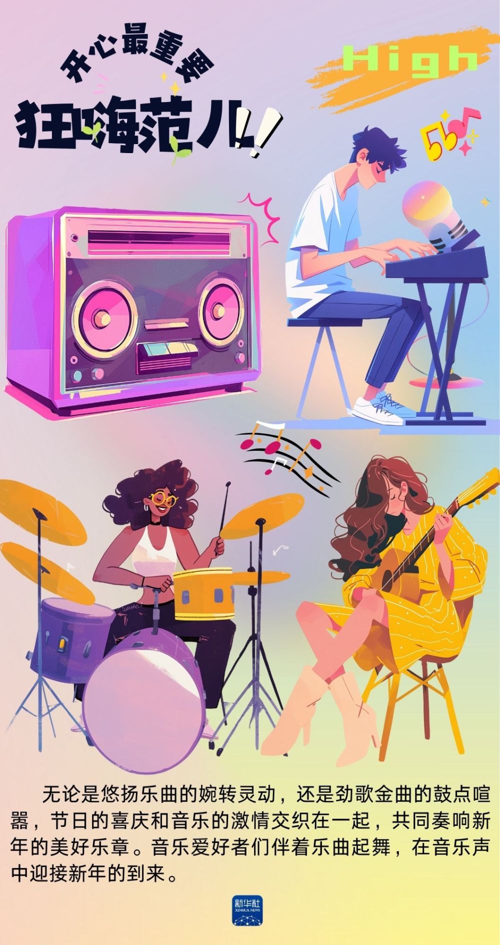 隨著日歷一頁頁剝落,2024年,這首悠揚(yáng)的長詩即將寫到終章,屬于每個(gè)人的精彩故事將要翻開新篇章。約上三五好友奔赴遠(yuǎn)方,看一場絢爛煙火;舒服地窩在家里,來一場年末大掃除;徜徉在音樂律動(dòng)的海洋,寫下與舊年告別的浪漫注腳……年輕的你,會(huì)用怎樣的姿勢邁進(jìn)2025年?跟隨一組海報(bào),看看哪一款是你的跨年“范兒”!