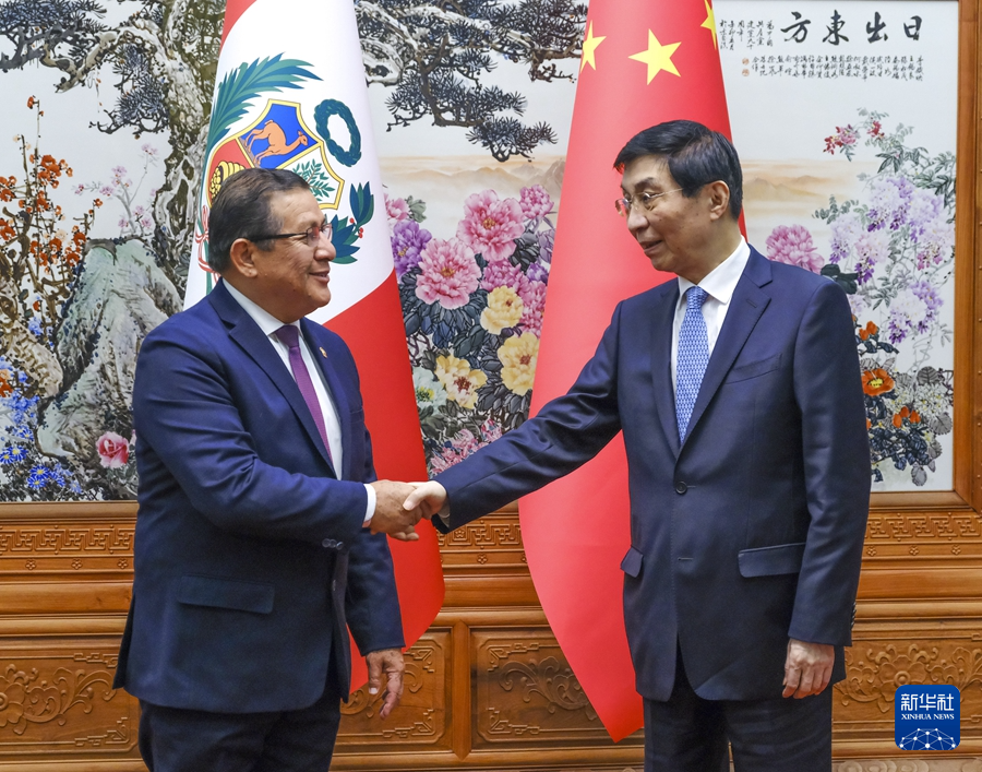 全國政協(xié)主席王滬寧6日在京會(huì)見秘魯國會(huì)主席薩盧安納。