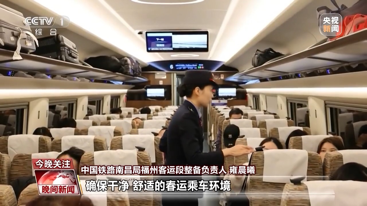 中國鐵路南昌局福州客運(yùn)段整備負(fù)責(zé)人 雍晨曦:今年春運(yùn),客流高峰日預(yù)計(jì)出現(xiàn)在正月初八。為此,我們準(zhǔn)備了25萬余件高溫熨燙消毒臥具和頭靠巾,增配了23萬余件滿足旅途需求的衛(wèi)生紙等消耗品,確保干凈、舒適的春運(yùn)乘車環(huán)境。