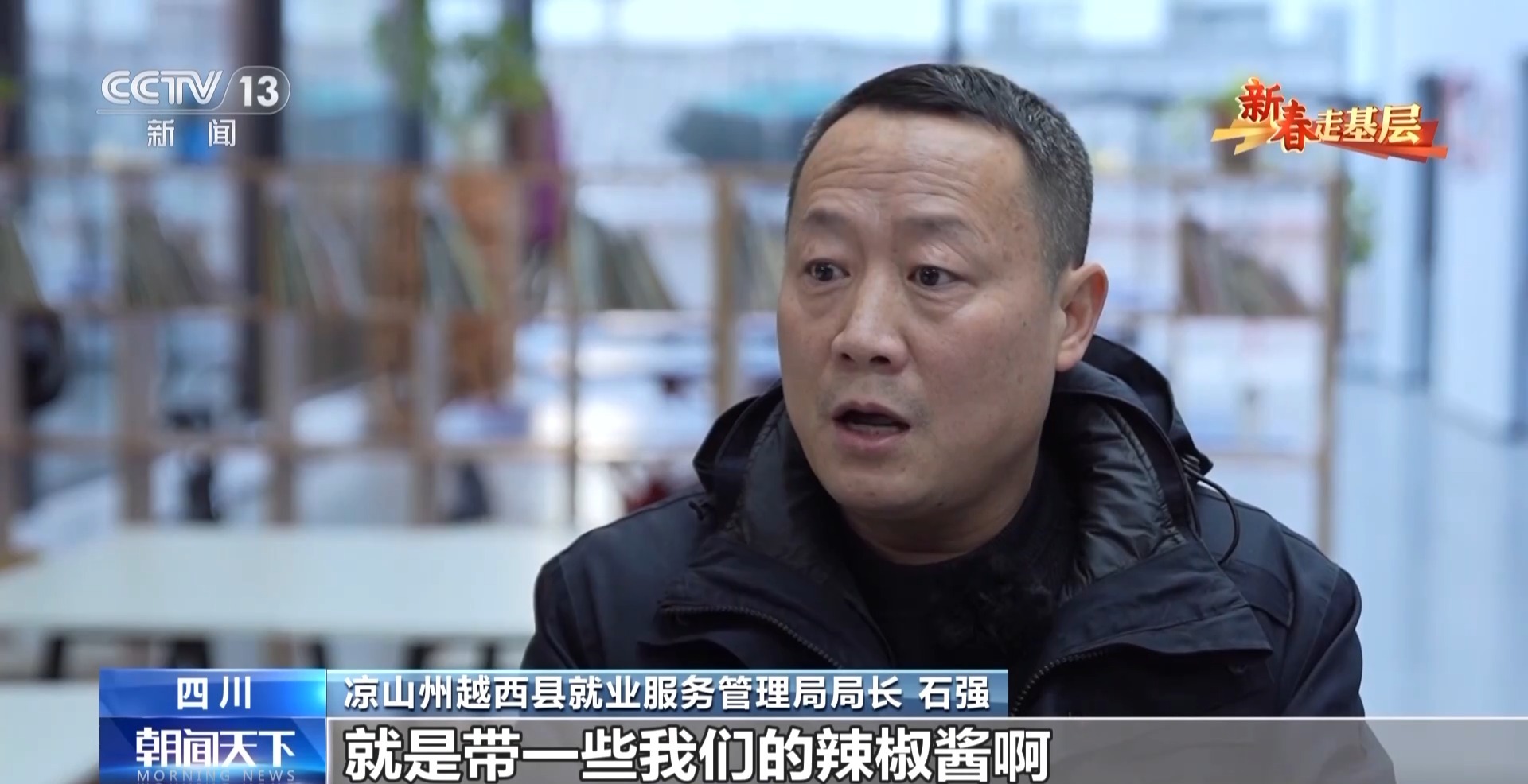 涼山州越西縣就業(yè)服務(wù)管理局局長(zhǎng) 石強(qiáng):出門總有思鄉(xiāng)的時(shí)候,就帶一些辣椒醬、豆腐乳,這些帶過(guò)去讓他解解饞,幫助他適應(yīng)。