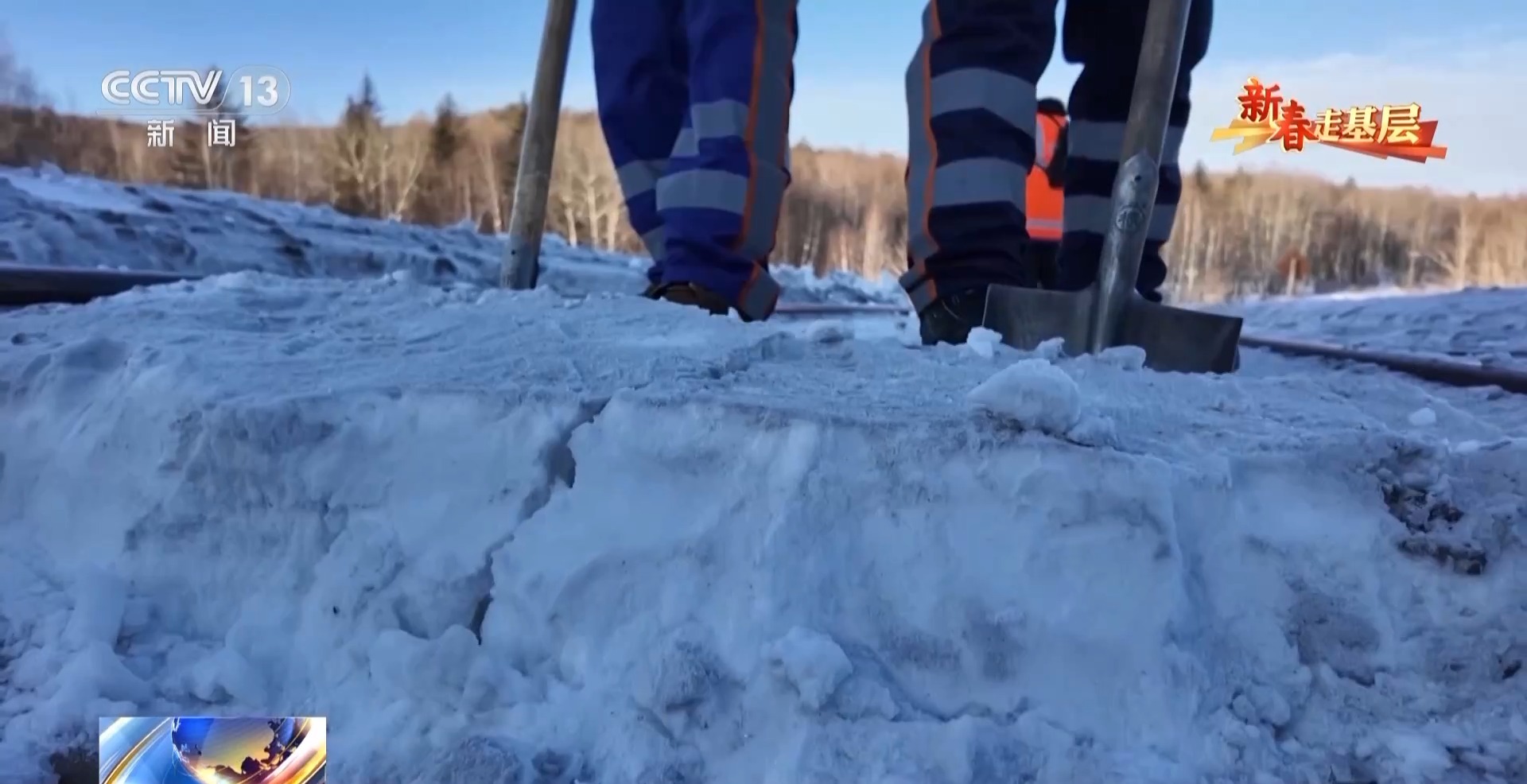 國鐵哈爾濱局蒙克山維修工區(qū)班長 翟明朗:要下山還行,上山太困難了,山里有溝的地方我們看不到,雪都是平的,而有的時候一踩禿嚕就掉雪溝里了。