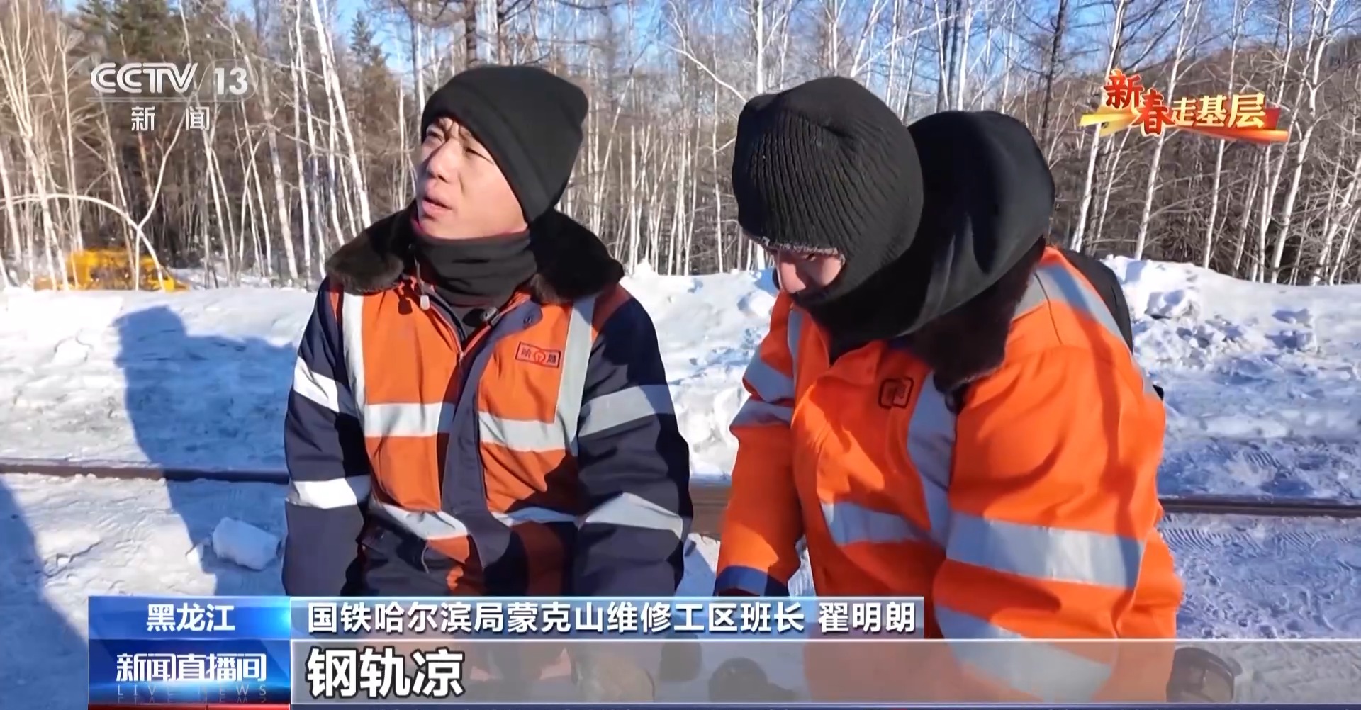 國鐵哈爾濱局蒙克山維修工區(qū)班長 翟明朗:冬天因為氣溫比較低,鋼軌涼,然后手熱,它碰著鐵直接就粘住了。不能直接往下拽,容易給皮拽下來。