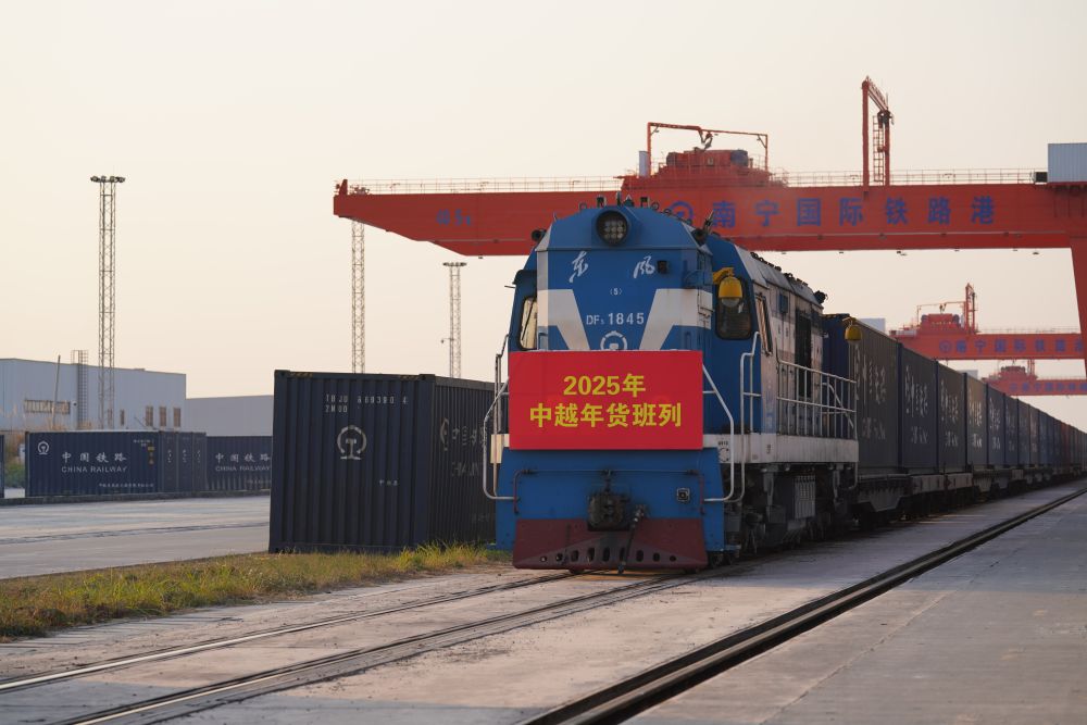 1月15日,中越年貨班列在南寧國(guó)際鐵路港整裝待發(fā)。新華社發(fā)