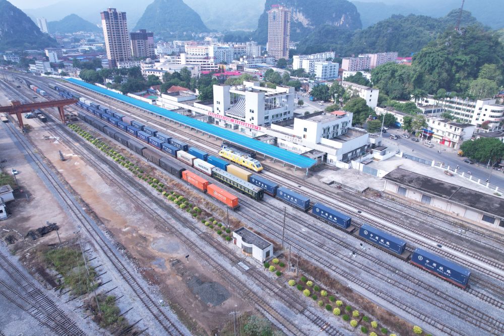 2024年10月17日,在國(guó)門(mén)車(chē)站憑祥站,中越班列列車(chē)整裝待發(fā)。新華社發(fā)