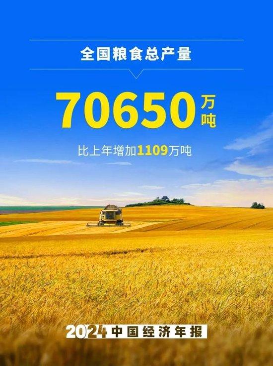 2、全國(guó)糧食總產(chǎn)量70650萬(wàn)噸,比上年增加1109萬(wàn)噸。