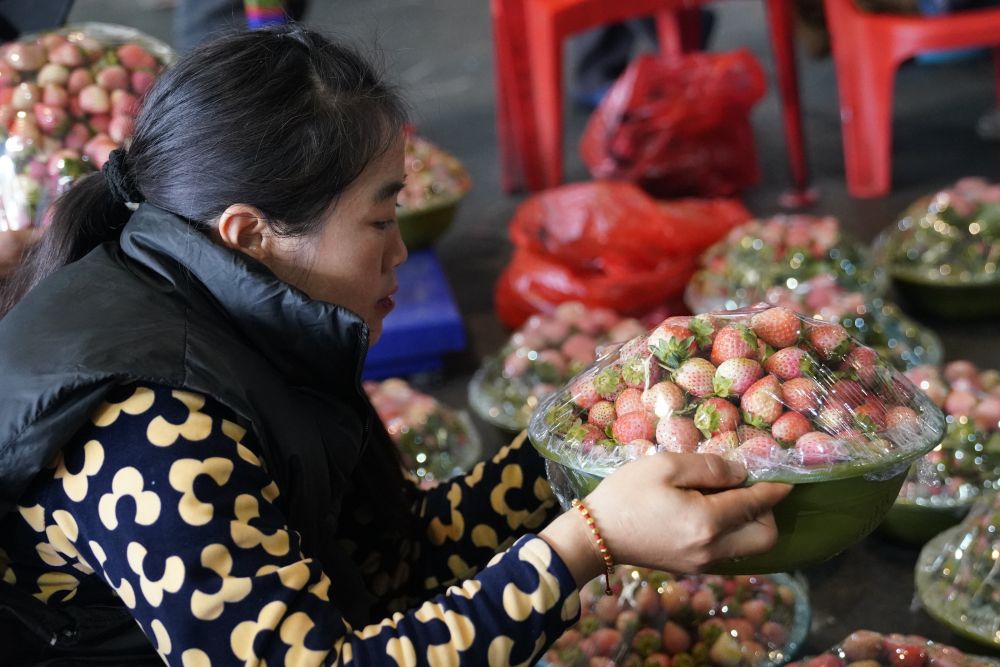 消費(fèi)者在選購草莓。新華社記者 趙歡 攝