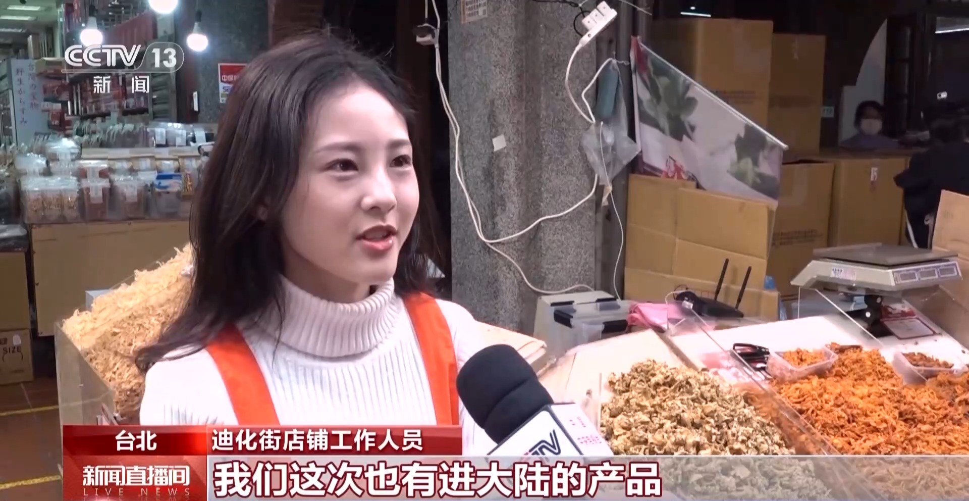 迪化街店鋪工作人員:我們這次也有進(jìn)大陸的產(chǎn)品,是小黃魚酥跟白帶魚酥,但是白帶魚酥因?yàn)檎娴馁u得太好了,所以我們前幾天就已經(jīng)斷貨了。