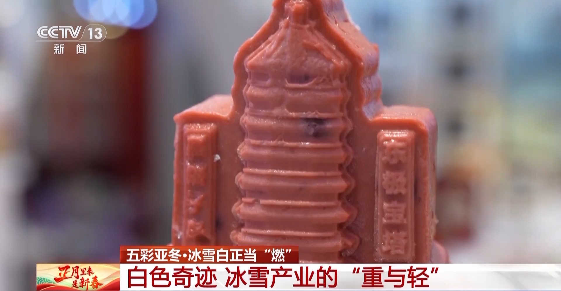與冰雪相擁,講究一口哈氣一口冰,越冷越吃冰。這根撫遠地標東極寶塔的文創(chuàng)雪糕,讓游客眼前有美景,口中甜蜜蜜,盡情享受舌尖上的冰雪風情。