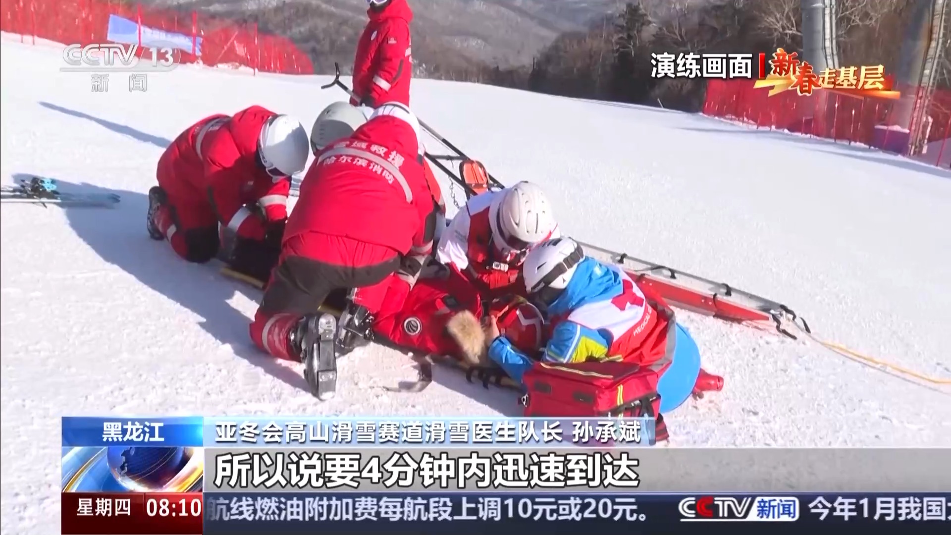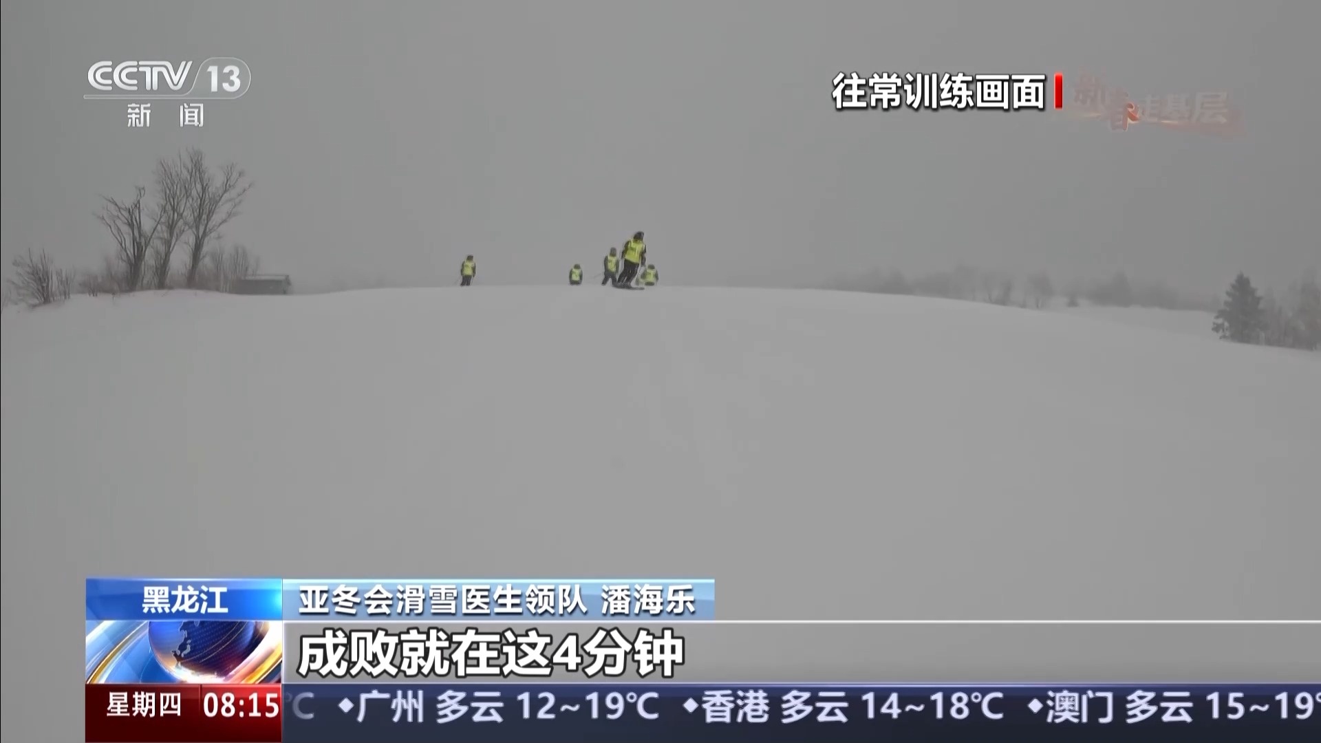 亞冬會滑雪醫(yī)生領(lǐng)隊 潘海樂:經(jīng)過一年的非??炭嗟挠柧?,我覺得現(xiàn)在應該都具備了真正賽場保障的能力,但是還需要真正的賽場大考來把成色再驗一驗,就是我們怎么能夠黃金4分鐘處理好,成敗就在這4分鐘。