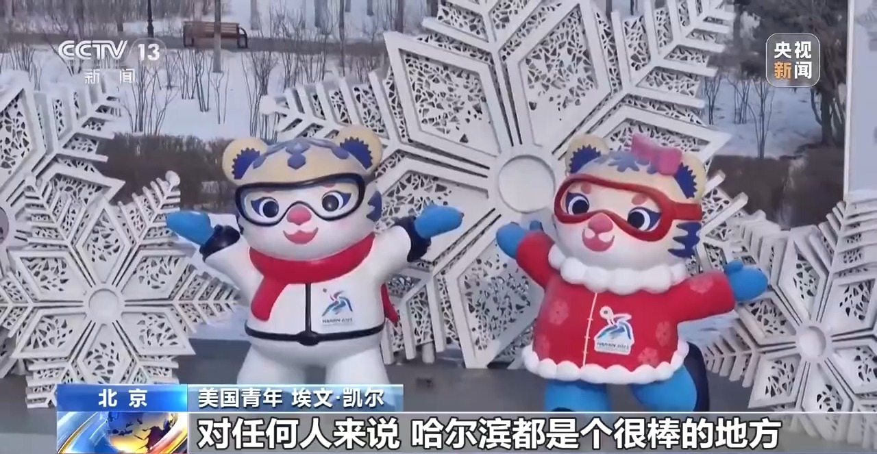 美國青年 埃文·凱爾:對任何人來說,哈爾濱都是個很棒的地方,這里盛行冬季運(yùn)動。我特別喜歡吉祥物——妮妮和濱濱,老虎造型太可愛了。大家對我非常友好,我度過了一段美好時(shí)光。人們一定會非常享受今年的亞冬會。
