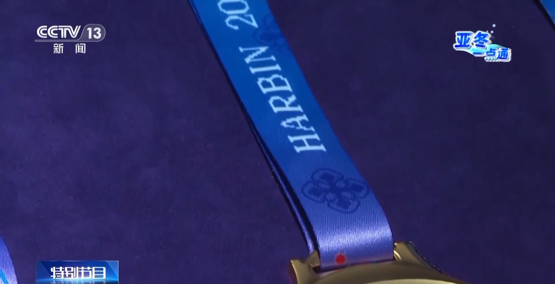 第九屆亞冬會獎牌設計團隊負責人 鄒存亮:正面就結(jié)合亞冬會的標識,我們就想到了亞冬會雪上賽區(qū)的賽道,它是一個抽象形態(tài),又是個流線的。我們也考慮了哈爾濱大劇院這種流線形態(tài),最后我們把抽象的形態(tài)和亞冬會logo成功地融合在了一起。
