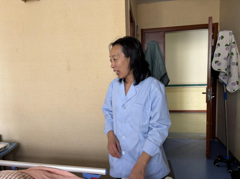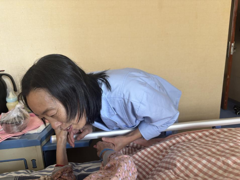來(lái)自黑龍江省的李世娟,今年55歲,因?yàn)槟昙o(jì)原因本想從事育兒嫂工作的她只能從事護(hù)理工作?!凹艺菊f(shuō)雇主更想要年輕些的阿姨帶孩子?!陛氜D(zhuǎn)之下,她考取了護(hù)工資格證,成為一名老年護(hù)理員?!斑@是我照顧的第二位老人”她輕聲說(shuō)。第一位老人出院時(shí),家屬本想帶她走,她婉拒了,“看著他們好起來(lái)我也高興,但這里總有更需要我的人?!闭勗?huà)間,90床奶奶的兒子來(lái)探望老母親,輕摸著奶奶的頭一遍又一遍地問(wèn)著“睜眼看看,我是誰(shuí)呀”,奶奶也是含糊不清地說(shuō)著“不知道”,兒子半開(kāi)玩笑地說(shuō)“傻老太太”。李世娟在一旁緊忙說(shuō):“你不要說(shuō)她傻啊,糊涂啊,因?yàn)榛加邪柶澓DY的人有時(shí)是清醒的,一聽(tīng)你說(shuō)她傻她就覺(jué)得自己好像是傻了”,李世娟向記者說(shuō),自己平日很喜歡看健康教育節(jié)目,見(jiàn)到認(rèn)識(shí)的人也會(huì)多科普幾句,“我姑娘說(shuō),媽你別老給人家上課,我說(shuō)媽那不是上課,只是想把自己知道的分享給人家”,李世娟一邊說(shuō),一邊難掩苦笑。