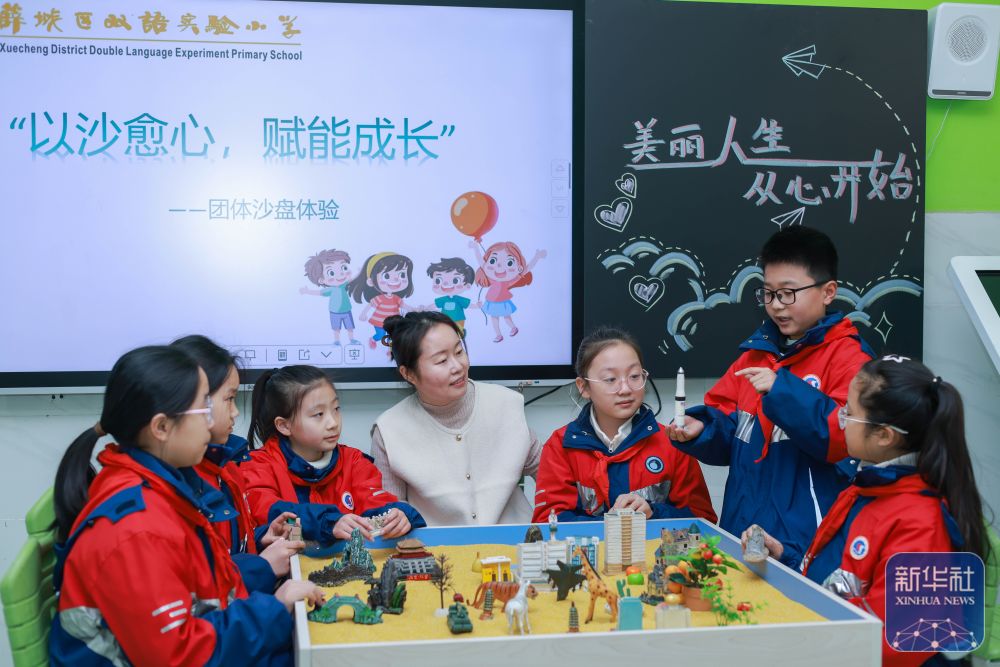 2月14日,山東省棗莊市薛城區(qū)雙語實驗小學(xué)老師為學(xué)生進(jìn)行心理健康教育。新華社發(fā)(王龍飛攝)