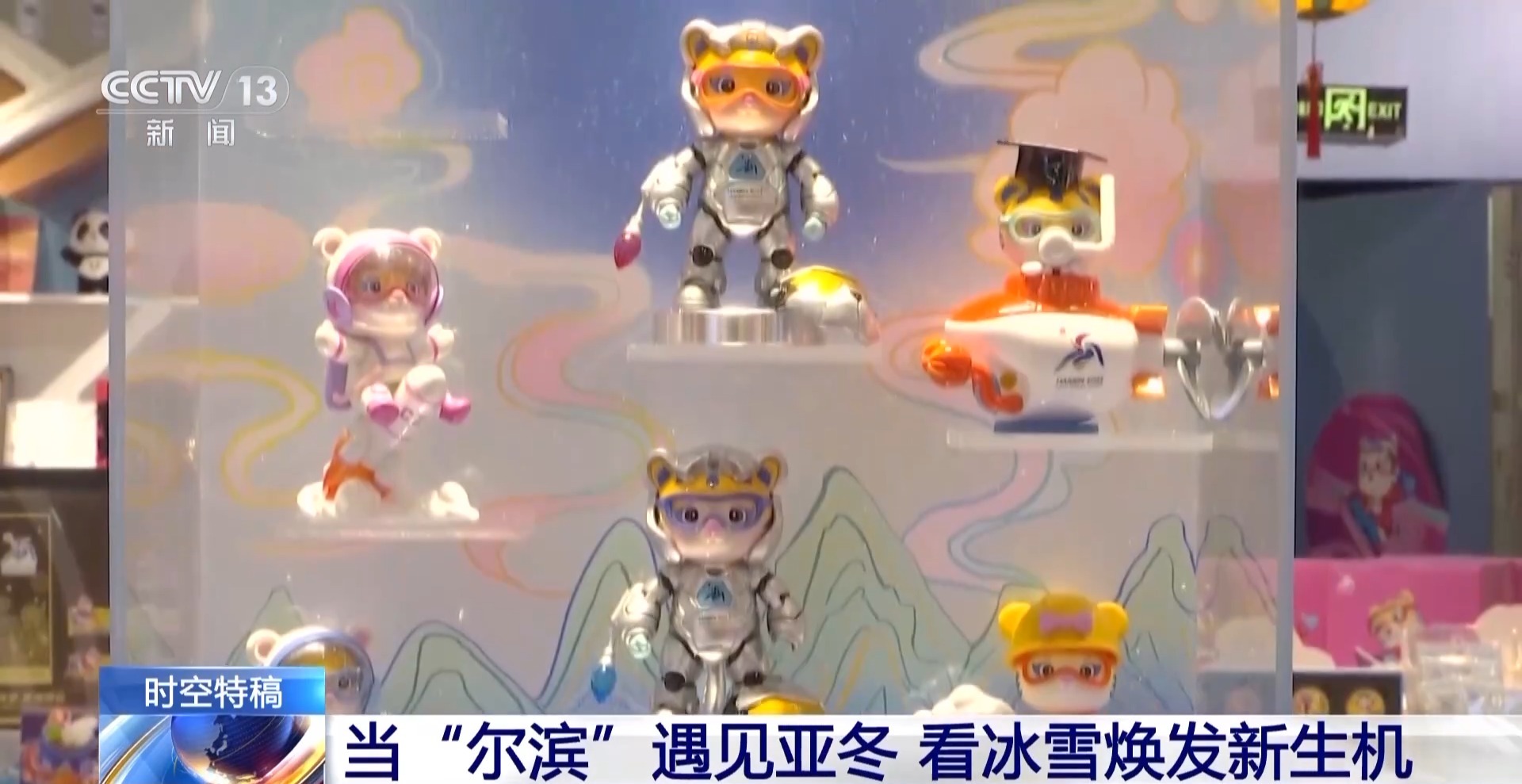 總臺央視記者 鄭怡哲:看完了亞布力的絕美雪景和熱鬧非凡的雪場,讓我們回到哈爾濱的市區(qū)來看一看。那要說什么地方最能體現(xiàn)黑龍江哈爾濱兩屆亞冬會城市這一端的變化,那一定是這個雙亞冬的紀念館,其實我覺得從紀念品上就能看出這個城市的特點和發(fā)展脈絡。